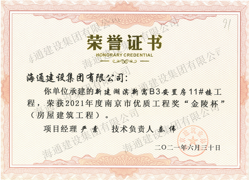 2021“金陵杯”-新建湖濱新寓B3安置房11#樓工程
