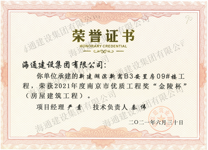 2021“金陵杯”-新建湖濱新寓B3安置房12#樓工程