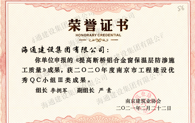 2021QC《提高斷橋鋁合金窗保溫層防滲施工質(zhì)量》