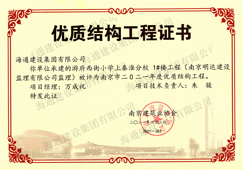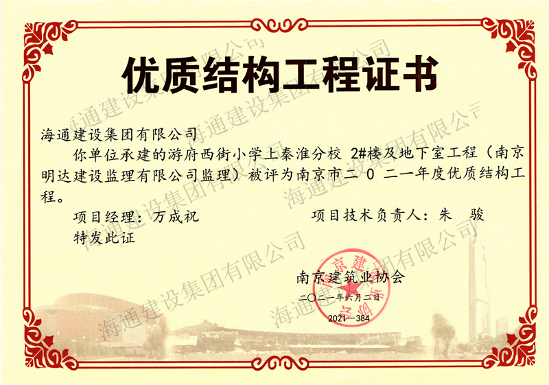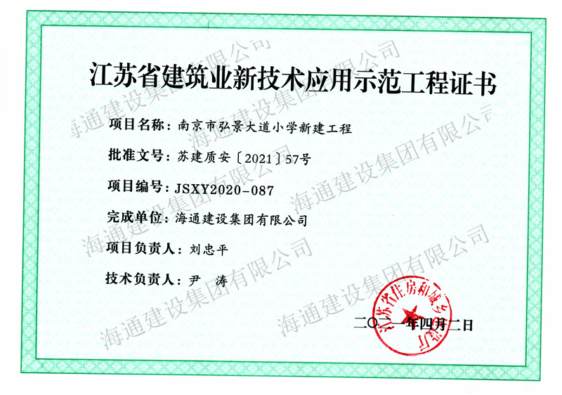 2021江蘇省建筑業(yè)新技術應用示范工程證書