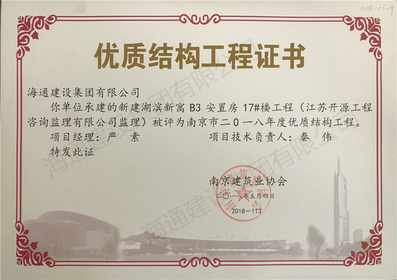 南京市優(yōu)質(zhì)結(jié)構(gòu)2018新建湖濱新寓B3安置房17#樓工程