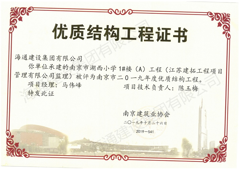 南京市優(yōu)質(zhì)結(jié)構(gòu)2019南京市湖西小學(xué)1#樓(A)工程