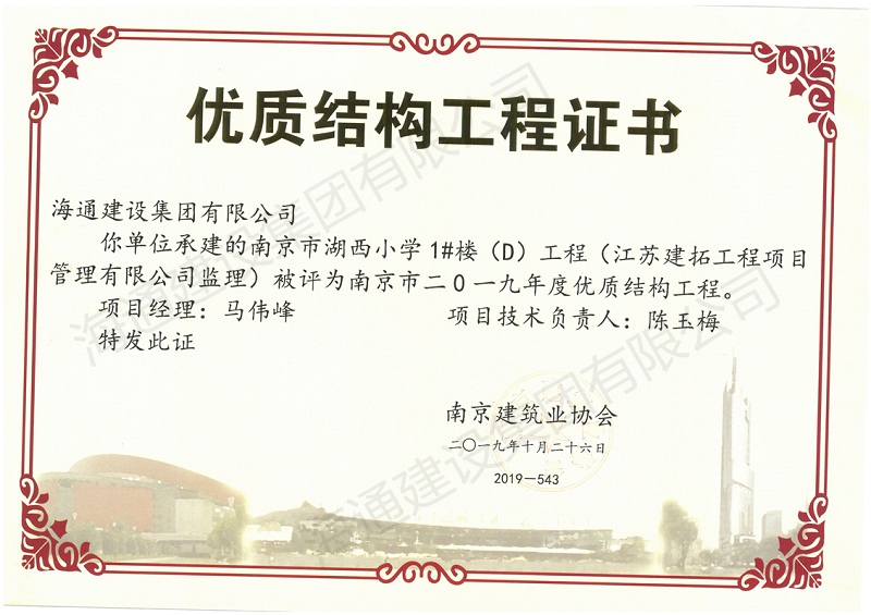 南京市優(yōu)質(zhì)結(jié)構(gòu)2019南京市湖西小學(xué)1#樓(D)工程