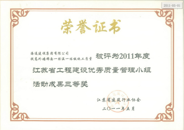 江蘇省工程建設(shè)優(yōu)秀質(zhì)量管理小組活動成果三等獎