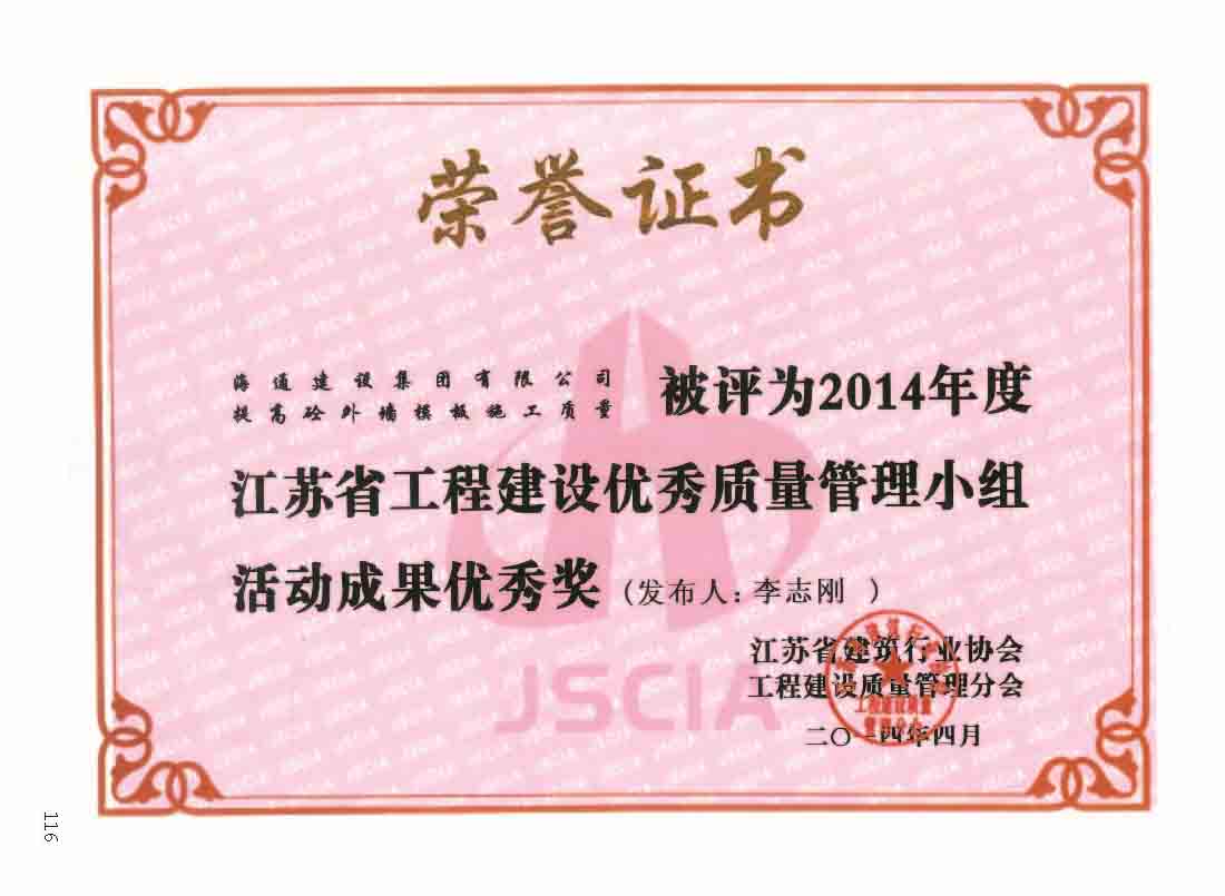 工程建設(shè)優(yōu)秀質(zhì)量管理小組活動(dòng)成就獎(jiǎng)