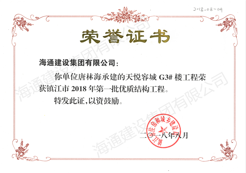 鎮(zhèn)江市優(yōu)質(zhì)結(jié)構(gòu)2018天悅?cè)莩荊3#樓