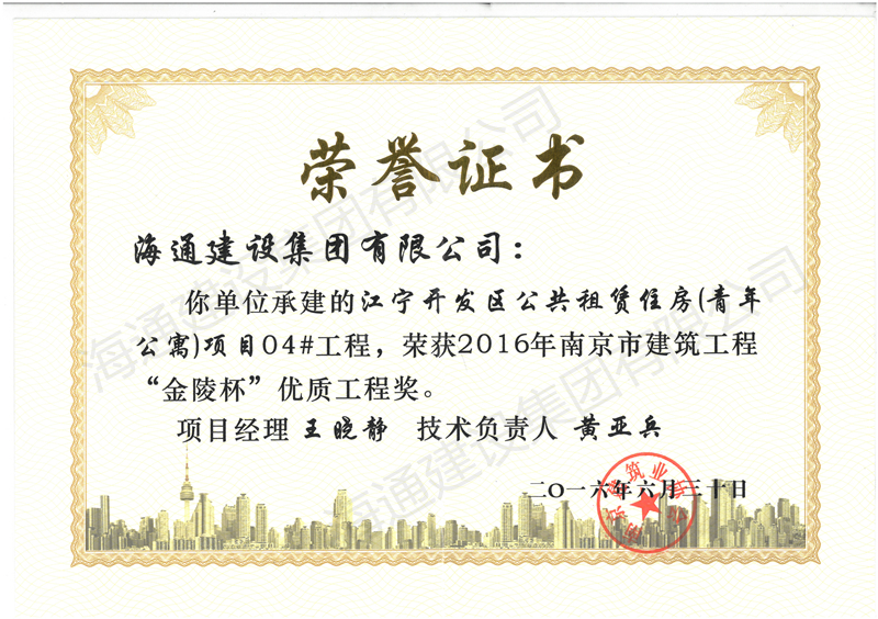 南京市金陵杯2016江寧區(qū)開發(fā)區(qū)公共廉租房項(xiàng)目04#工程