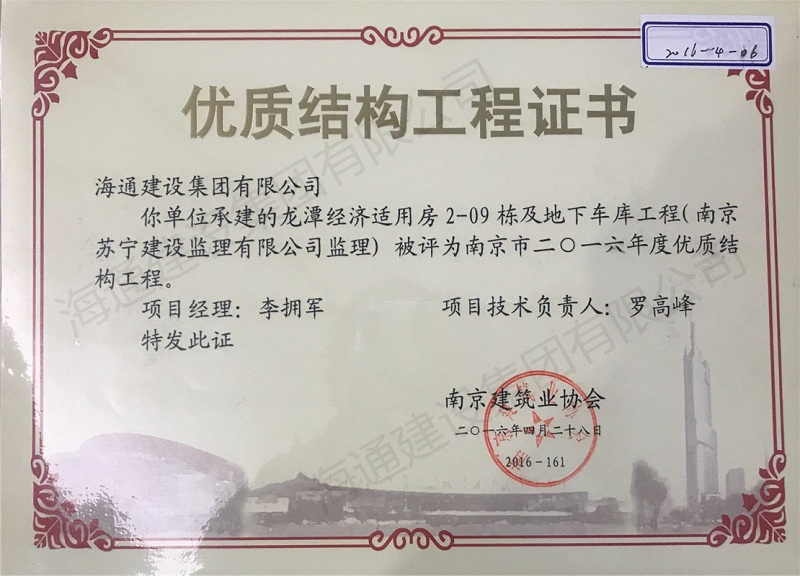 南京市優(yōu)質(zhì)結(jié)構(gòu)2016龍?zhí)督?jīng)濟(jì)適用房2-09棟及地下車庫工程