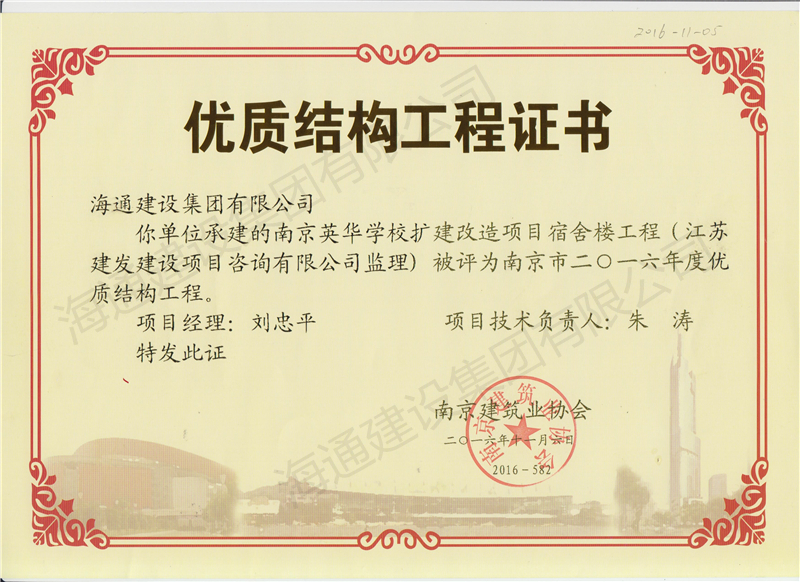 南京市優(yōu)質(zhì)結(jié)構(gòu)2016南京英華學(xué)校擴(kuò)建改造項(xiàng)目宿舍樓工程