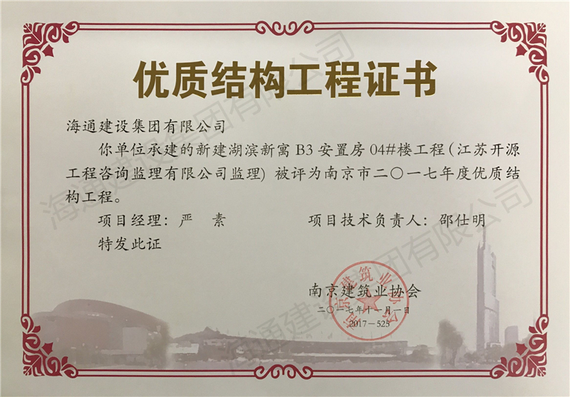 南京市優(yōu)質(zhì)結(jié)構(gòu)2017新建湖濱新寓B3安置房04#樓工程