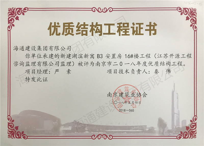 南京市優(yōu)質(zhì)結(jié)構(gòu)2018-新建湖濱新寓B3安置房15#樓工程