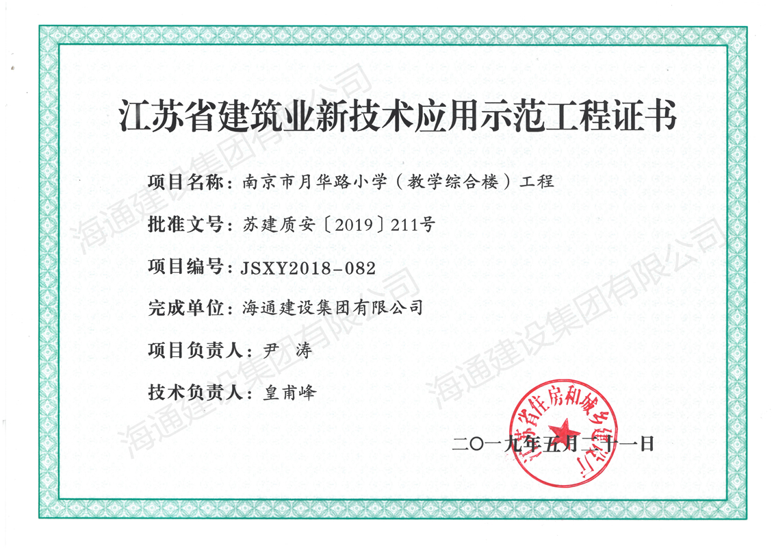 江蘇省建筑業(yè)新技術(shù)應(yīng)用示范工程2019南京市月華路小學(xué)(教學(xué)綜合樓)工程
