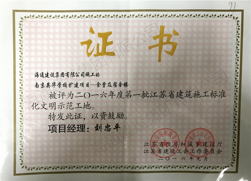 江蘇省文明工地2016南京英華學(xué)校擴建項目-食堂及宿舍樓