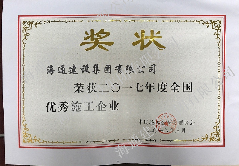 全國優(yōu)秀施工企業(yè)2018