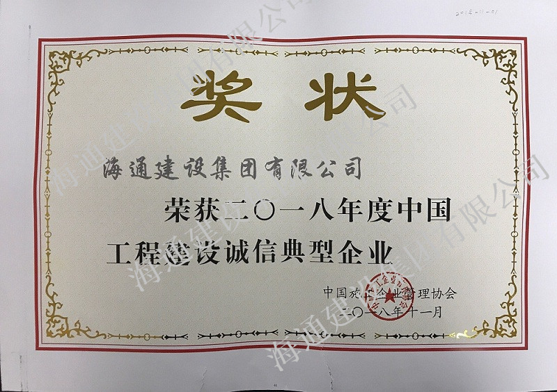 中國工程建設(shè)誠信典型企業(yè)2018