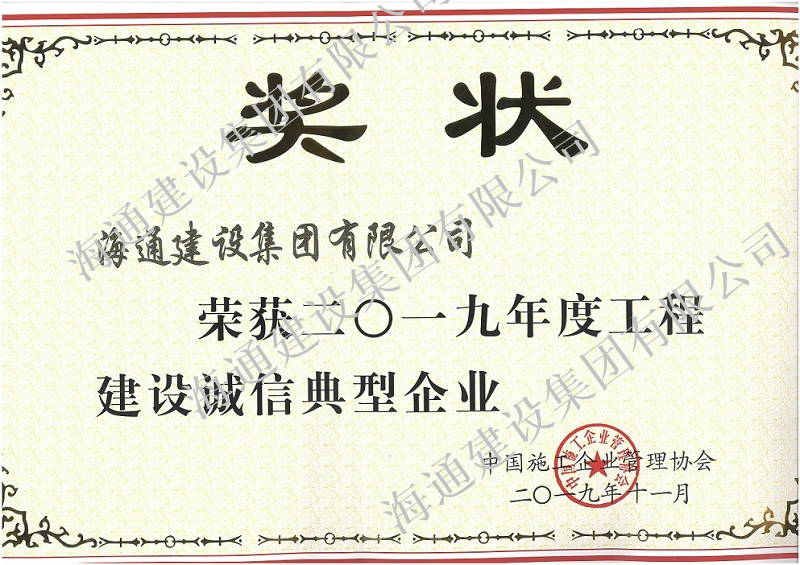 中國(guó)工程建設(shè)誠(chéng)信典型企業(yè)2019