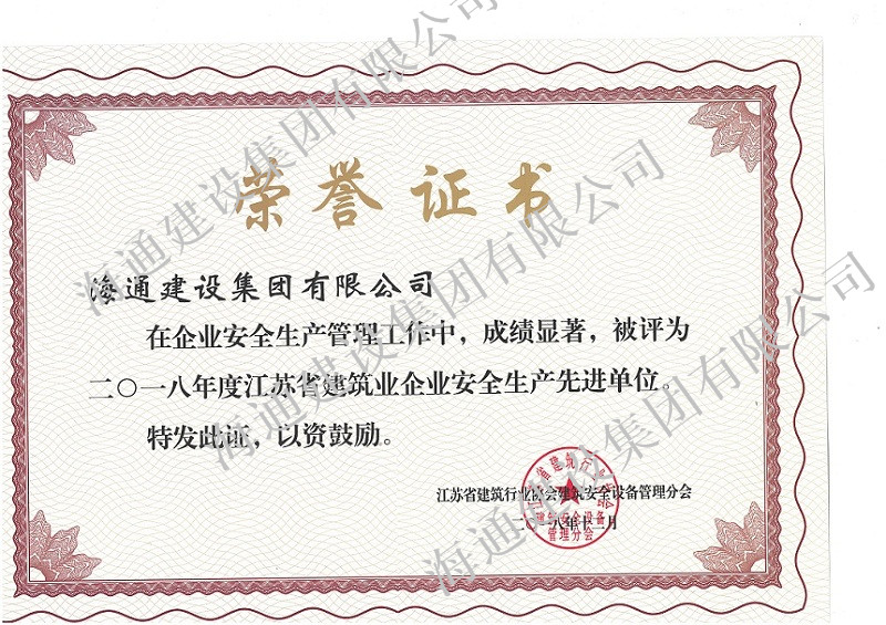江蘇蘇建筑業(yè)安全生產(chǎn)先進(jìn)單位2018